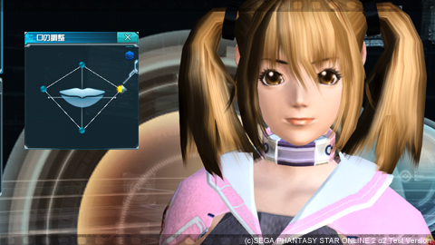 キャラクリエイトでは 口の口角を上向きにするとニッコリした感じになります。