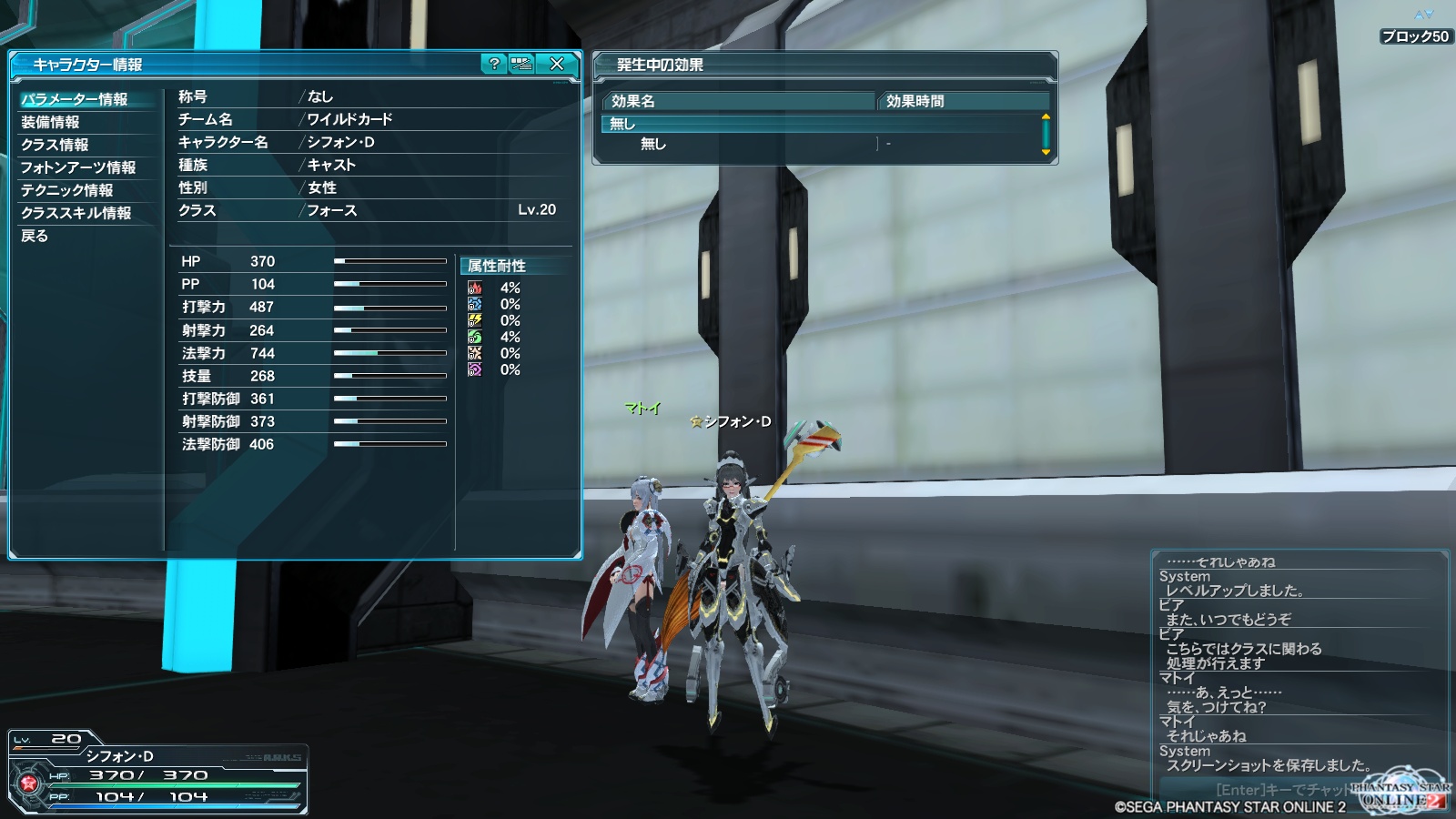 Lv20になったフォースのステータスをこちらに。