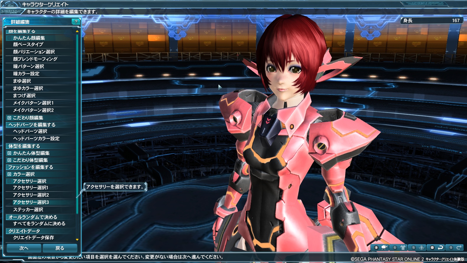 「画像は『PHANTASY STAR ONLINE 2』キャラクタークリエイト体験版において撮影された実機画像です。」